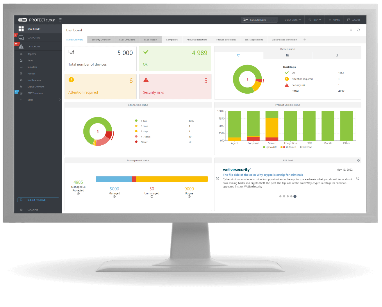 Uruchomienie ESET PROTECT zajmuje dosłownie kilka minut – logujesz się do portalu, aktywujesz usługę i możesz zacząć zarządzać ochroną urządzeń. Nie trzeba kupować serwera, instalować systemu ani planować skomplikowanej infrastruktury – wszystko działa w chmurze.